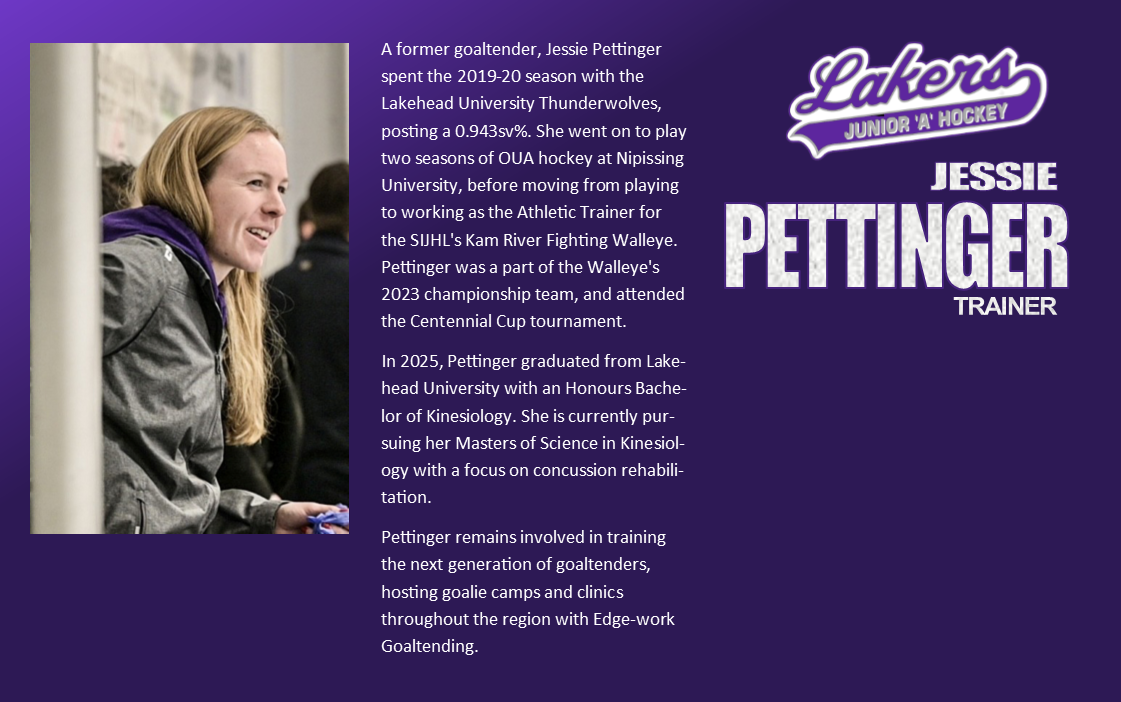 A former goaltender, Jessie Pettinger spent the 2019-20 season ... click for complete bio