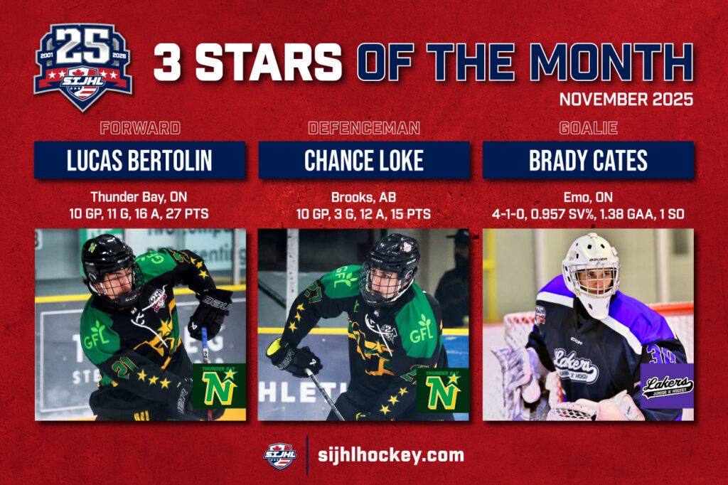 The Superior International Junior Hockey League (SIJHL) has named its Three Stars for the month of November of regular season play: